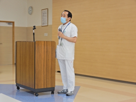 毎月1日は朝礼です。院長最後の朝礼での講話になります。聖隷の理念について、医療安全について、地域医療構想、働き方改革など大切な話ばかりでした。