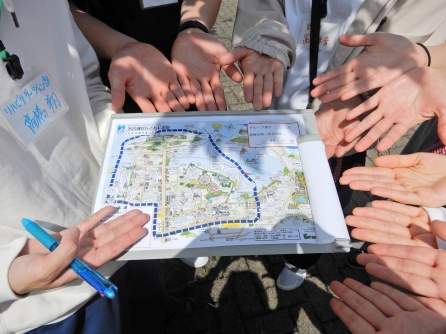 1年目研修B班1日目。アイスブレイクの後はウォークラリーでチームの連帯感を深めます。天気もよく暑いくらいでしたね。皆良い笑顔で嬉しくなりました。
