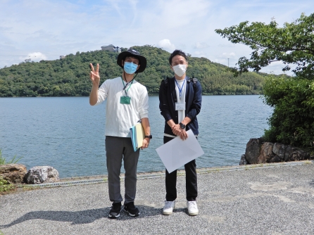 ポイントで待機する研修委員。浜名湖バックにすばらしい景観でのツーショット!