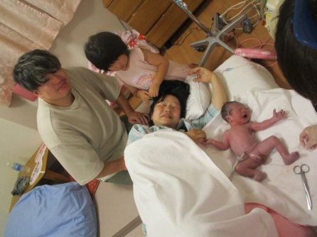 お母さんは最初から最後までずっとおちついて上手に出産されましたね。赤ちゃんの頭が大きめで、最後お母さんは大変でしたがとても上手な出産でした。
