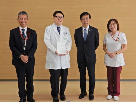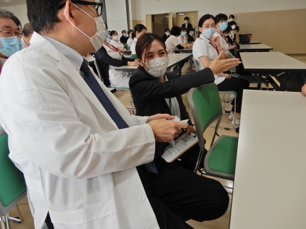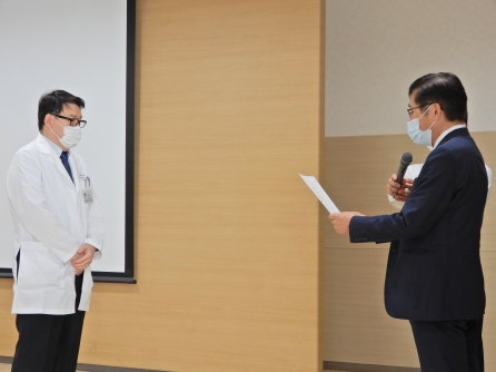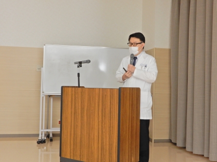 7月は土日スタートのため朝礼が7月3日になりました。新院長山本貴道先生が朝礼でお話することもあって大ホールは満員御礼状態でした。新しいリーダーがどのように考えているか直接聞きたい、新しいことへのわくわくした職員の気持ちの表れでしょう。これからも職員一丸となって前に進んでいきたいと思います。