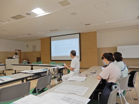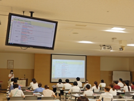 7/4看護記録4の研修、クリニカルラダーⅣをめざす看護職対象です。学習目標は①予測的な状況判断のもと意図的に収集した4側面の情報を統合し、看護理論を活用し患者理解を深める。②研修修了後に1事例以上、担当看護師として看護実践につなげる、となっています。集合研修の後の実践とつなぎ合わされた研修が多くなっています。