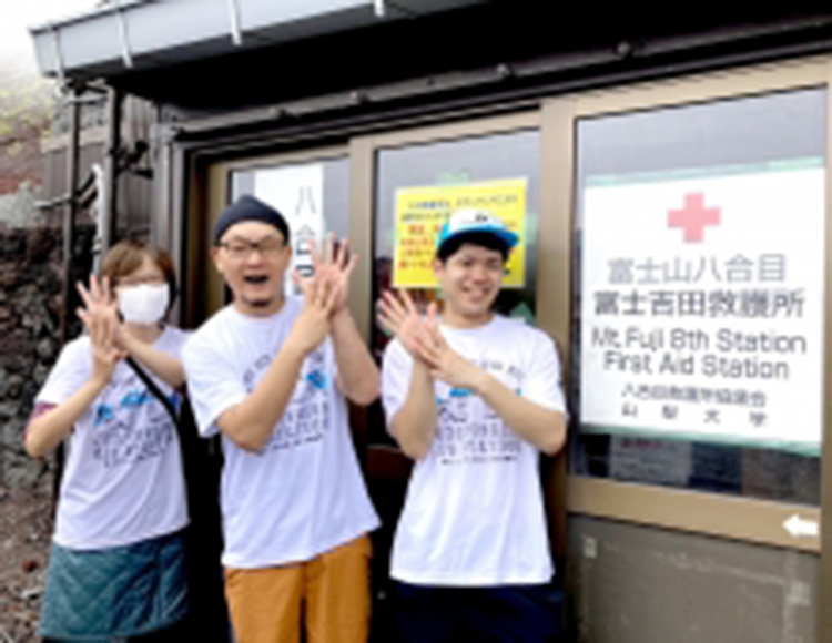 今年の富士山の山開きは7月10日(月)! 閉山は9月10日(日)のため2ヶ月間が富士山登山シーズンとなります。 登山者は吉田ルート、須走ルート、御殿場ルート、富士宮ルートの4つの登山ルートから頂上を目指して登頂するそうで、昨年はなんと約16万人の登山者が富士山を訪れたとか! 今回は夏山シーズンの富士山救護所で2泊3日のボランティアに参加してきた1年目研修医N先生の活動報告をご紹介します。 富士山でのボランティア歴15年以上のベテラン看護師さん(一番左)と三方原病院の元看護師Kさん(真ん中)と3人の診療チームで活動しました! 吐き気や嘔吐、めまい、頭痛を伴って脱水状態に