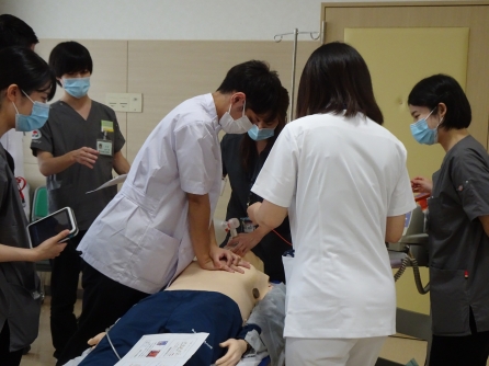 最初にICLSの説明があり、その後は研修医によるデモンストレーションが行われました。