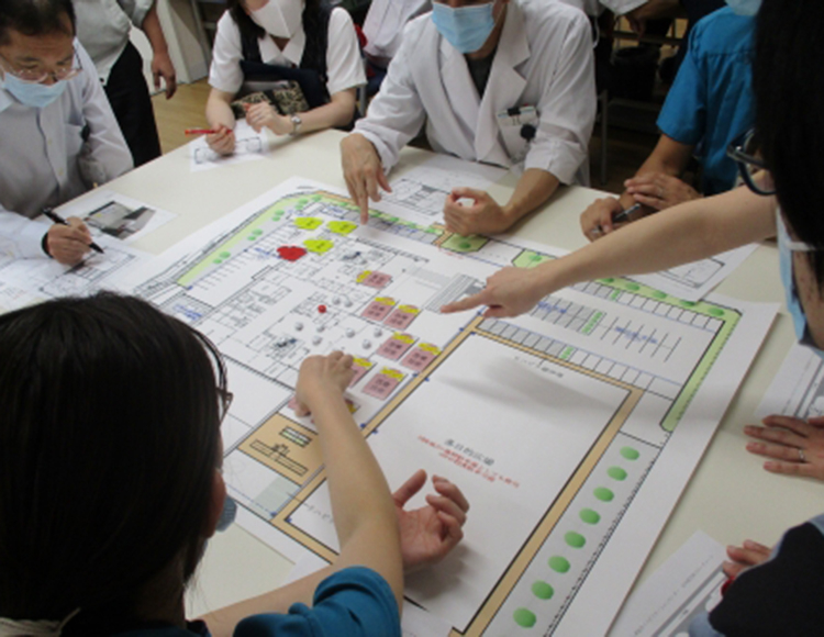 10月20日(金)に、リハビリテンションセンターで火災訓練を行いました。 今年は、机上訓練と消火放水訓練を行いました。 机上訓練では、リハビリテーション部スタッフ、看護師、事務職によっていくつかのチームを作り、 実際の災害を想定し、患者さんの誘導経路や、スタッフの動きを確認しました。 チームによって考えが異なり、多くのパターンが想定されました。 最後には、チーム同士で発表し合い、安全に避難するポイントを共有しました。 消火放水訓練では、実際にホースから放水する訓練を全員で行いました。 消火栓のスイッチを押し、ホースを伸ばし、放水。 水圧がすごくて、しっかり握らないとホー