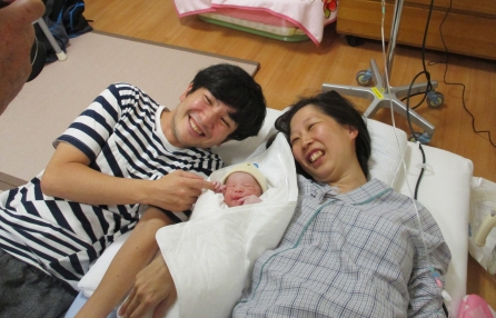夜中から始まった陣痛が徐々に強まり、パパと一緒にたんぽぽへ。さすが経産婦さん、陣痛の度にぐんぐんお産が進んでいきました。最後はお姉ちゃんのカッパダンスの動画の後押しで、元気な男の子が誕生!