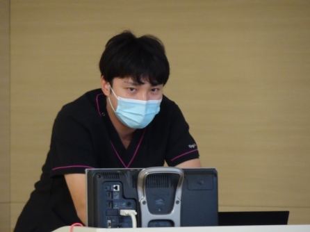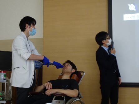 講義の途中で実際に内視鏡を用いて嚥下機能の評価もしました。