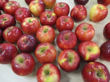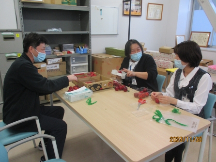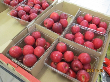 本物のリンゴにひも付けして、ツリーに飾ります。