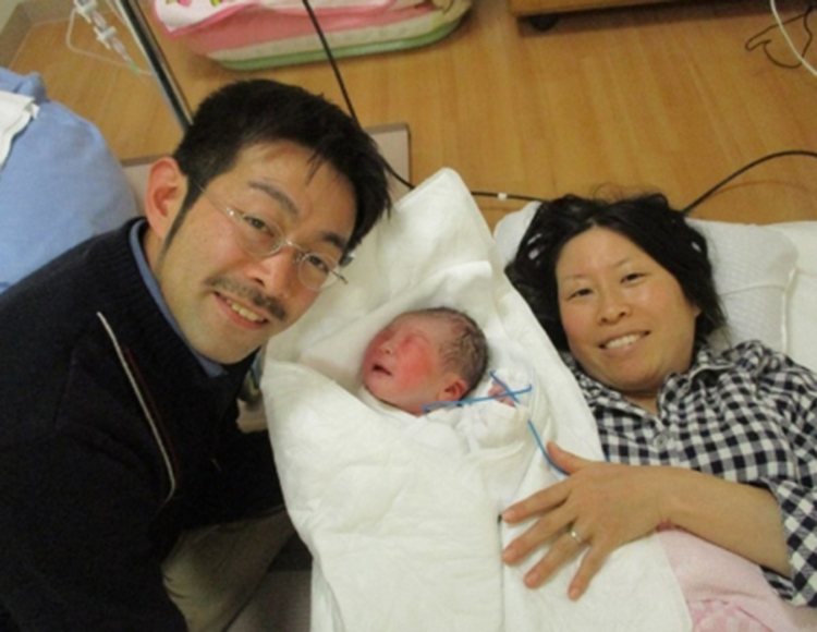 朝から陣痛が始まりました。たんぽぽで足湯をしていたら、陣痛が強まりお布団へ。そこから一気に進みましたね! パパも腰や背中をさすってくれたり、水分補給を手伝ってくれたりしてサポートしてくれました。お布団に移動してからどんどんお産が進みましたね。ママの呼吸法が上手で、とても落ち着いて出産されました。パパも立ち会いできてよかったです☆ ご出産おめでとうございます!