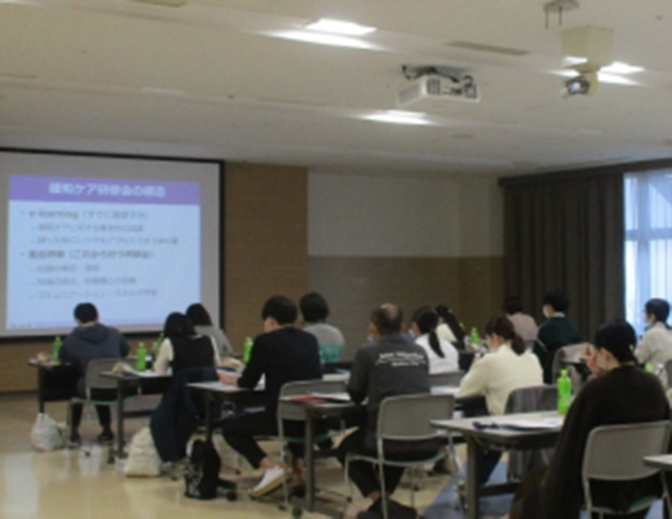 2023年12月3日(日)当院で緩和ケア研修会が開催されました。 本研修会は、「がん等の診療に携わる医師等に対する緩和ケア研修会の開催指針」に基づき、緩和ケアの基本的な知識等を習得するために全国各地で開催され、研修会修了者は10万人を越えています。 今回の研修は当院の医師を中心にコメディカルや近隣病院の医師など24名が参加しました。 講義の他にも事例検討のグループワークや、緩和ケアにおけるコミュニケーションのロールプレイで、活発な意見交換がされていました。