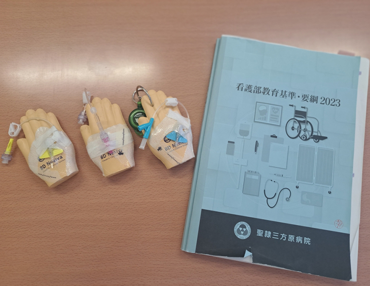 当院は末梢静脈留置針にネクシーバとういう針を使っています。針刺し予防の安全機能がついていてこれにより挿入中の針刺し事故は減少しました。うまく定着しているということで新人看護師の導入研修から研修プログラム、研修後の現場での教育状況などのお話を聞きたいとのご要望を受けました。 この来訪時のBDの営業マンNさんのバックにつけているキーホルダー(1番→)がすごかった!笑。他のモデルと一緒に写真を撮らせてもらいました。