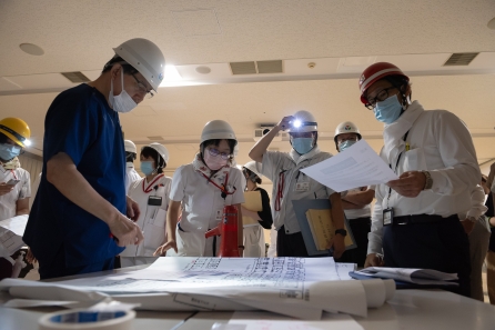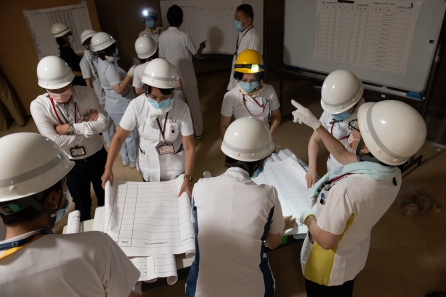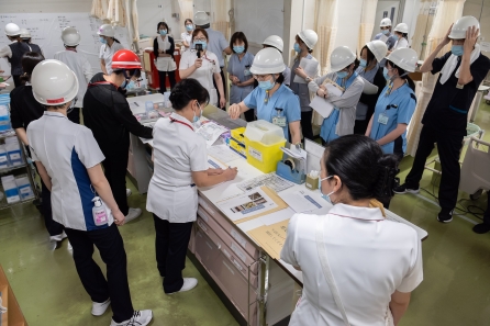 発災直後の混乱を想定した動きを確認しました。また訓練が進むなか、各所で実践された対応がまた新たな想定として院内全体に展開され、全職場が連動して取り組む形で進められました。