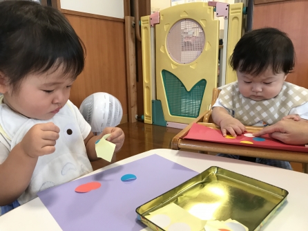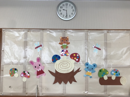 屋内では貼り絵で一足はやい秋を楽しんでいます!