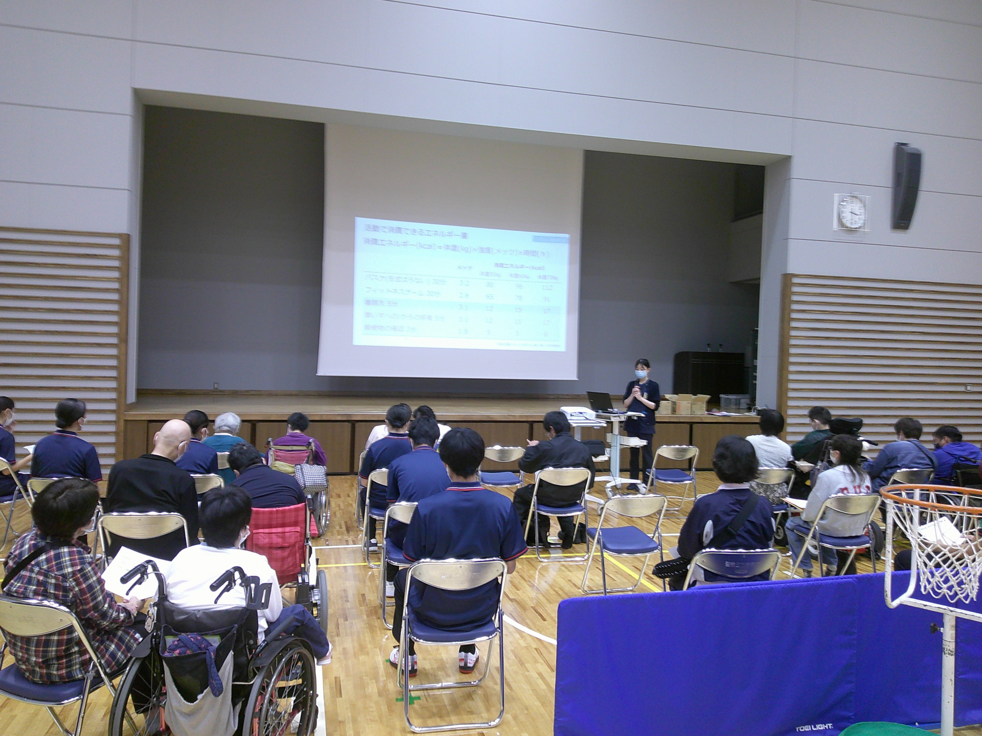 また、今回は当院管理栄養士による栄養講座も開催しました。リハビリの効果を最大限に出すことや、介助量軽減のための体重管理には、食事管理が重要だと考えています。「継続できる食事術」というテーマで、実践方法を踏まえながら伝えていただきました。