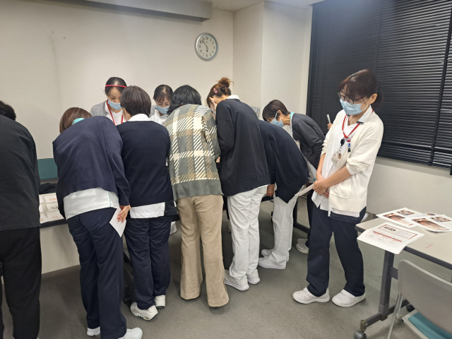 12月4日、がん薬物療法看護認定看護師のK課長が「がん患者さんをサポートするためのネイルチップ体験会」を開催してくれました。当日はネイルサロンを経営し、全国のネイルサロンに「ネイルドネーション」を呼びかけがん患者さんのために活動している方がきて体験会をしてくれました。医療者だけでなく、様々なジャンルの方ががん患者さんのことを真剣に考え活動していることを知りました。