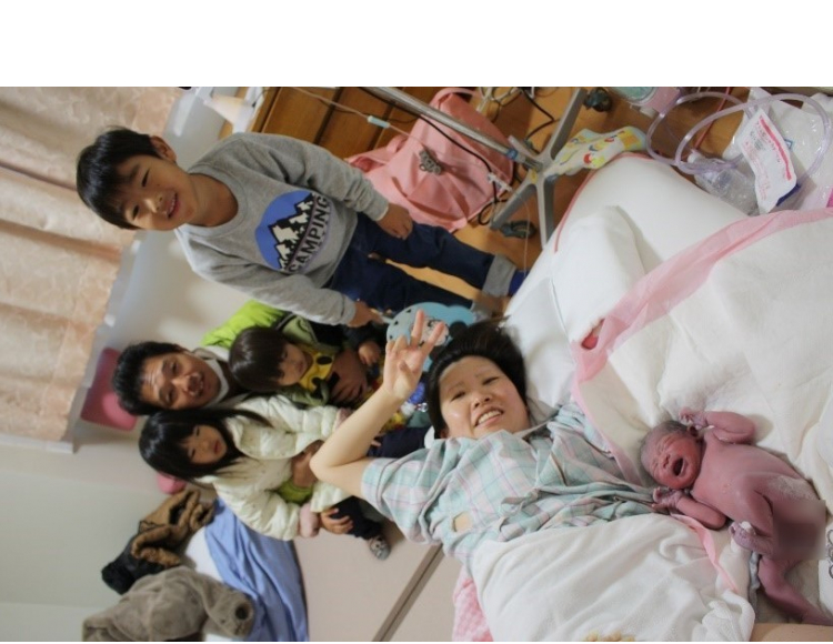 4人目の赤ちゃんが元気に誕生しました。4人とも院内助産所たんぽぽでの出産です。 陣痛が何度も押し寄せてくるなか、ご家族の到着を待って産みたいと頑張りました。計画通り、ご家族到着後20分以内の大安産★ お兄ちゃんが「臍の緒を切りたい」と張り切って切ってくれましたね!とっても上手でした。 出産直後はたんぽぽがとっても賑やかになりましたよ。お兄ちゃんやお姉ちゃんが積極的にお手伝いしてくれそうですね。♪ おめでとうございます。