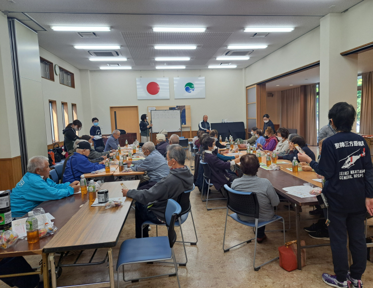 地域のケア提供者の皆さんと「旧北区天竜区看護介護職地域連携会議」という会で活動しています。昨年からはACPの推進活動としてシンポジウムを開催したり、サロンなどに訪問するなど市民参加型の開催としています。今回はシニアクラブから「フレイル予防」のテーマで依頼を受けましたので、合わせてACPについて知ってもらう内容で訪問させてもらいました。