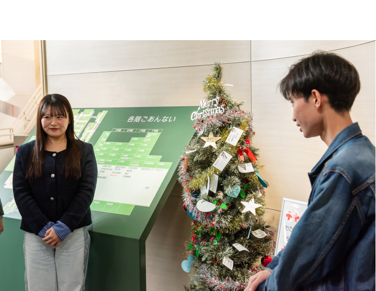 12月7日(日)、イオンモール浜松市野にて「全国学生クリスマス献血キャンペーン2025」が実施され、献血に協力いただいた方々から輸血を必要とする方への応援メッセージが寄せられました。このキャンペーンは、全国学生献血推進委員会が主催し、冬場に不足しがちな献血者の確保と、若い世代へ献血の輪を広げることを目的として全国で開催されている取り組みです。会場でいただいたメッセージカードを学生ボランティアの方がクリスマスツリーに飾り付けを行いました。12月8日(月)には、浜松市内の大学3年生2名が代表として当院へ来院し、このメッセージツリーを展示のために届けてくださいました。 温か