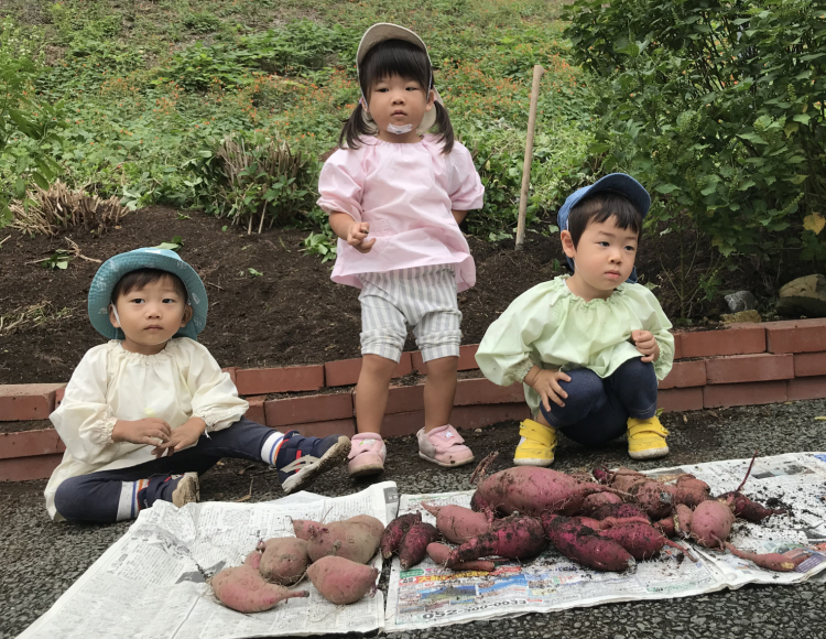 さくら園のこどもたちは、秋から冬へと季節が移り変わるなかで毎日たくさんの発見を楽しんでいます。 紅葉した葉っぱを踏んで「カサカサ」と鳴る音を感じたり、手に取って色や形の違いを見つけたりと、秋ならではのお散歩を満喫しました。 10月には「さつまいも掘り」、11月には「里芋掘り」に挑戦。自分の手で掘ったおいもをお土産に持ち帰り、ご家庭でも「おいしかった!」と喜んでいただきました。お部屋では、シール貼りやお絵描きなどの製作あそびに夢中。指先を使った活動や自由な発想の表現を楽しんでいます。 12月に入ると、園の近くの施設に出かけてクリスマスツリーを見学。きらきら輝くツリーの前で、こどもた