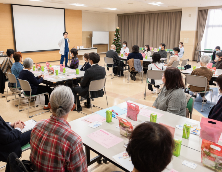 2025年12月12日、当院の活動を日頃より支えてくださっているボランティアの皆さまへの感謝の気持ちをお伝えするため、「ボランティア感謝会」を開催しました。 当日は、院内のさまざまな場面でご活躍いただいているボランティアの皆さまにご参加いただき、和やかな雰囲気の中で交流のひとときを過ごしました。患者さんやご家族に寄り添う日々の活動が、当院の医療や療養環境をより温かく支えてくださっていることを、改めて実感する機会となりました。山本院長からは、「皆さまの笑顔やお声がけは、患者さんの不安を和らげるとともに、私たち職員にとっても大きな支えとなっています」と、感謝の言葉が述べられました。普段はなか