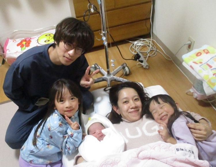 2025/11/12 23時10分 3004g 男児 本陣痛なのか判断に迷いつつの入院でしたが、自然に陣痛が強くなりました。家族が立ち会いに間に合うか心配でしたが、無事パパと2人のお姉ちゃん、おばあちゃんが見守る中、元気な男の子が生まれました。 お姉ちゃん達が、パパと一緒に臍の緒を切ってくれました。お姉ちゃん達にたくさん遊んでもらってね。 これからも育児楽しんでください♪ ご出産おめでとうございます。