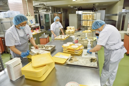 栄養課では、安心安全で美味しい食事を提供することで患者さんのお役に立てるよう日々努めています。