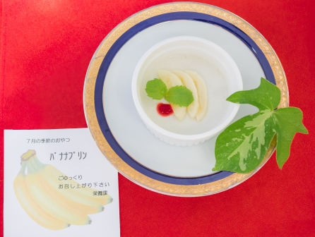 梅雨が明けていよいよ本格的に暑くなってきました。栄養価の高いバナナを見た目にも涼しげななめらかプリンに仕上げました。