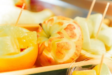 調理師が作製したカービング(飾り切り)が模擬店に彩りを添えています。