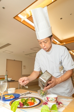 食事をお部屋に運ぶと「美味しそう!」という声や、中には写真を撮ってくださる方もいらっしゃいました。召し上がった後も笑顔で「ご馳走さまでした」とお声をもらう事も多く、日々やりがいを感じています。