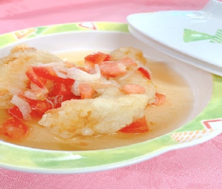 - 玉葱、トマトを3の半量に漬け、冷やす