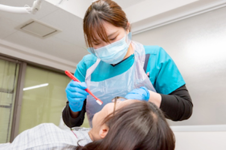 | 9:30 | 診療補助・口腔ケア 病棟での口腔ケアやブラッシング指導等をしたり、診療室での歯科医師による治療の補助をしたりしています。 |