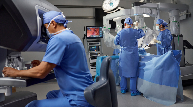 手術においては、プロクター認定資格や腹腔鏡技術認定資格を有するスタッフのもと、前立腺癌をはじめ、腎癌や腎盂尿管癌に対しても「ダヴィンチ」を用いたロボット支援手術を積極的に行っています。その他の腹腔鏡手術や、膀胱癌、前立腺肥大症、尿路結石に対する経尿道的内視鏡手術などの低侵襲手術も多く実施しており、患者さんの身体に優しい手術治療を安全かつ適切に提供することを心掛けています。