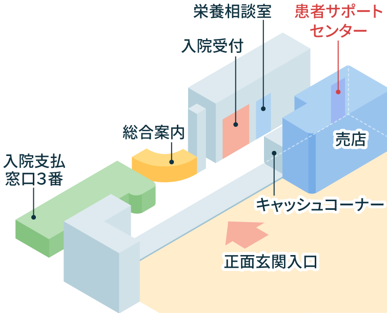 病院から保険会社への直接請求が可能な場合もありますので、加入されている保険会社、または1階3番入院会計窓口3番にご相談ください。