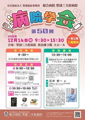 病院学会では、職員による研究発表・外部講師を迎えての特別講演に加え、パラスポーツ体験会や地域の3店舗(パン・焼き菓子・はちみつ)の出店など、ご家族や地域のみなさまも気軽に楽しめる企画をご用意しました。見て、聞いて、体験して、楽しめる一日です。どうぞお気軽にお立ち寄りください。