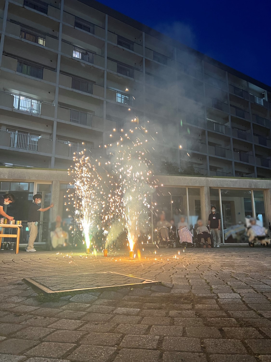 噴出花火!ご入居者から「うわ~、キレイ!」と声が上がりました。