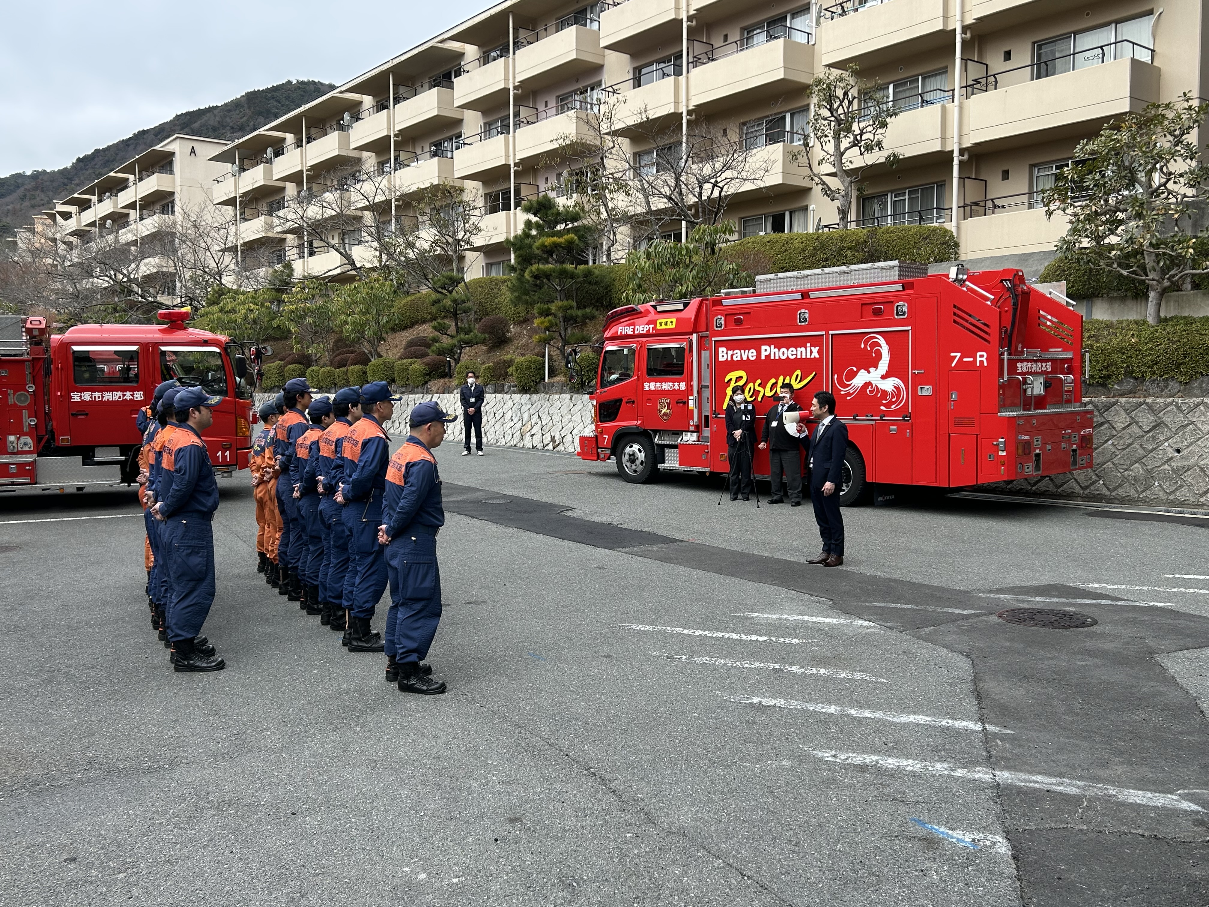 開設46年を迎えた宝塚エデンの園は2033年の全体完成に向け、最初に着工するE棟で、解体前に宝塚市消防本部・西消防署様による実践的訓練と記念イベントを2月26日(木)~28日(土)に開催いたしました。普段は見られない貴重な光景に包まれました。