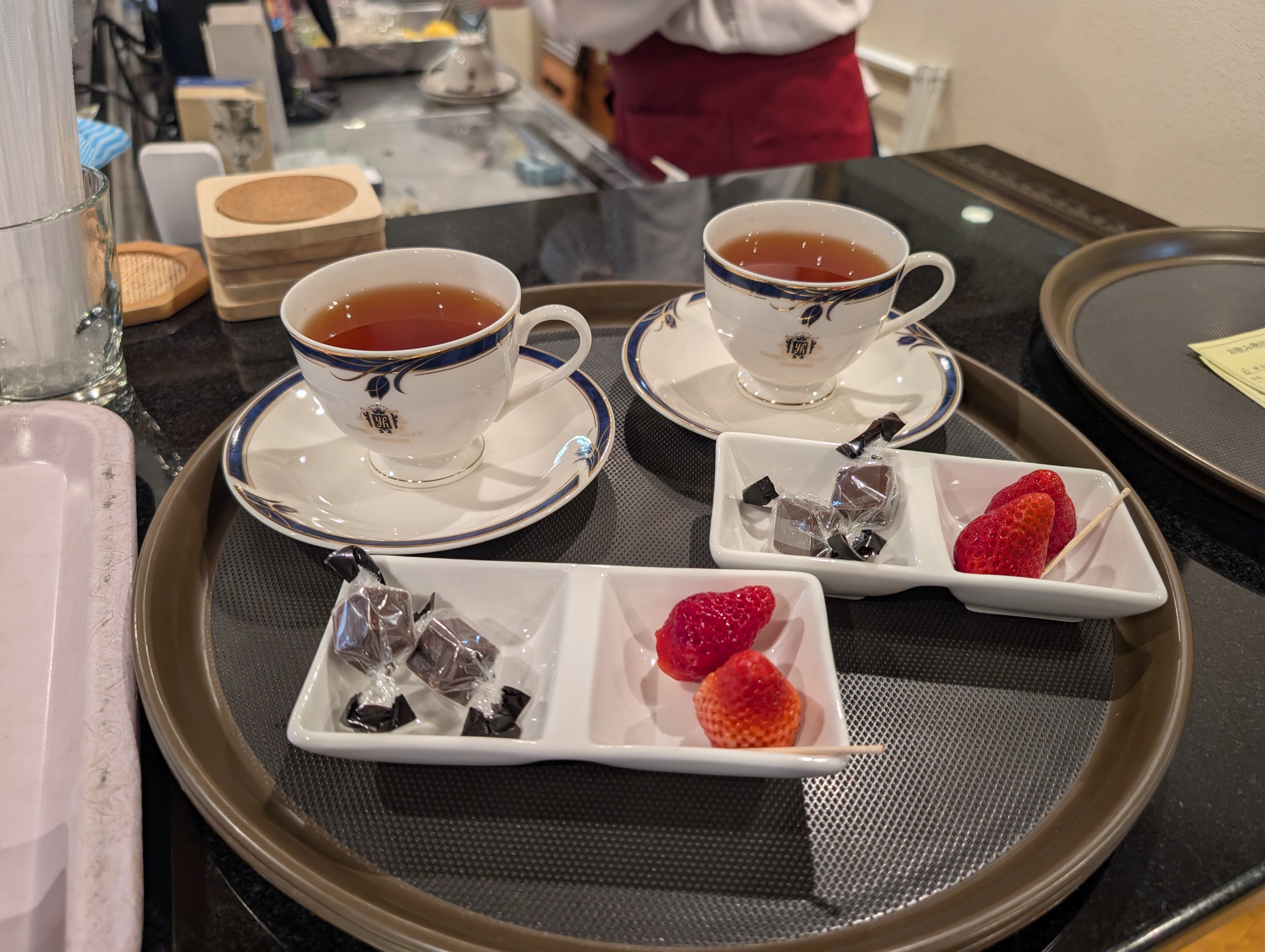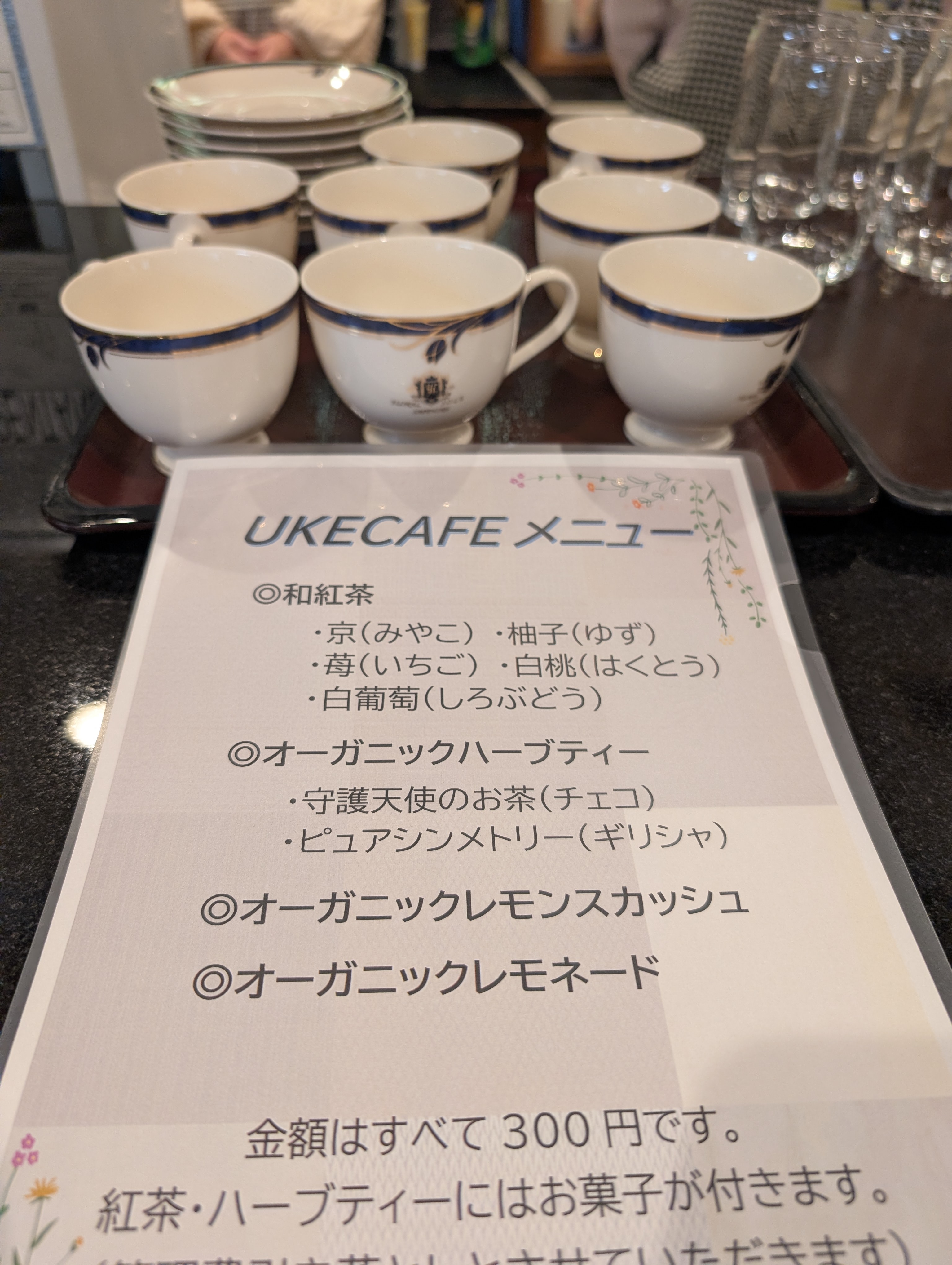 回によって看板メニューは変わりますがこれまではスムージー、今回は和紅茶やハーブティーをご用意しました。紅茶やハーブティーにはお菓子(チョコといちご)付です。和紅茶はフルーツテイストのものをご用意