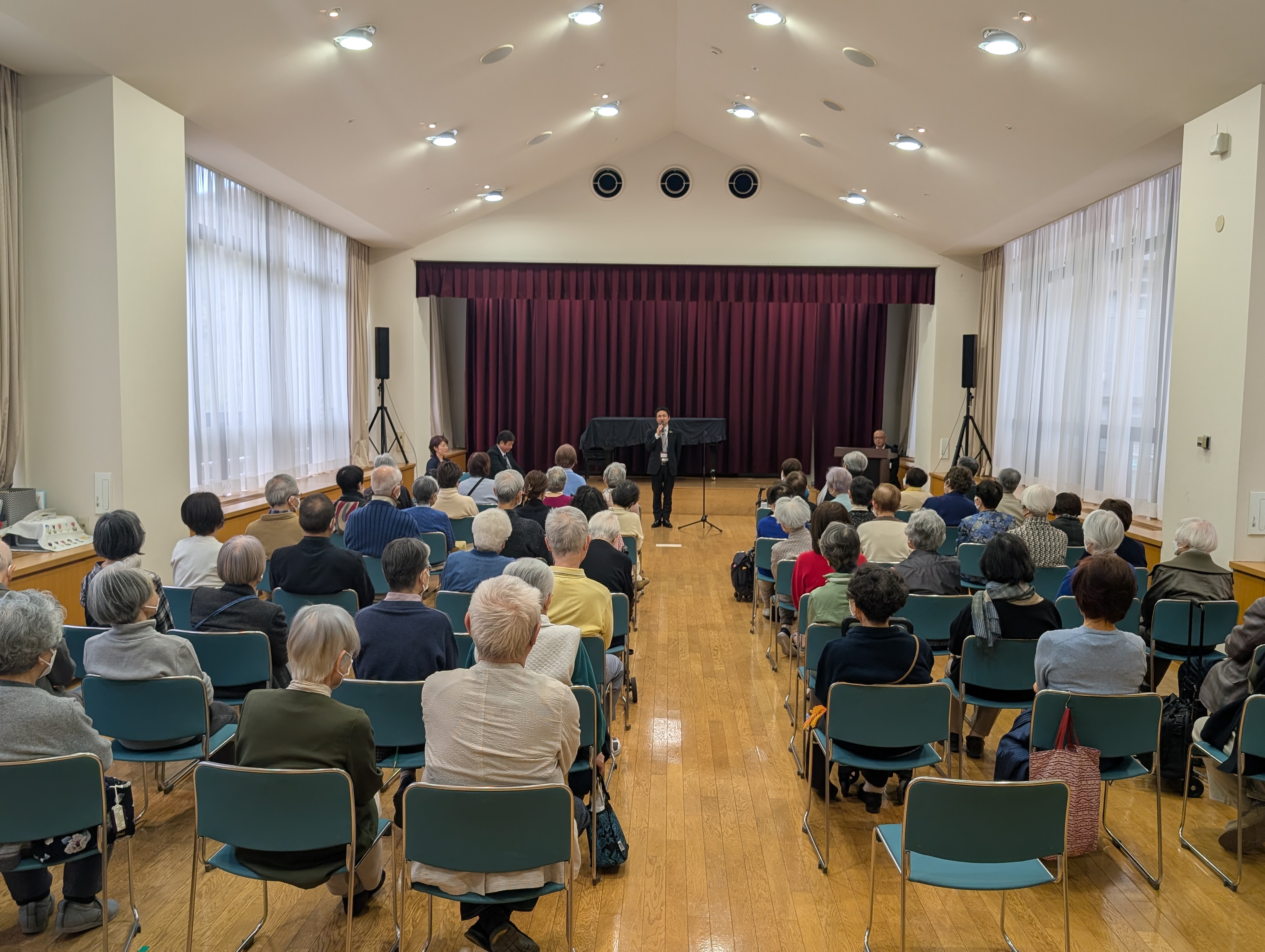 会場には約70名ものご入居者が集まってくださり、エデン放送を通じて自室から見守る方々も合わせると、まさに園全体が一つになったような時間でした。
