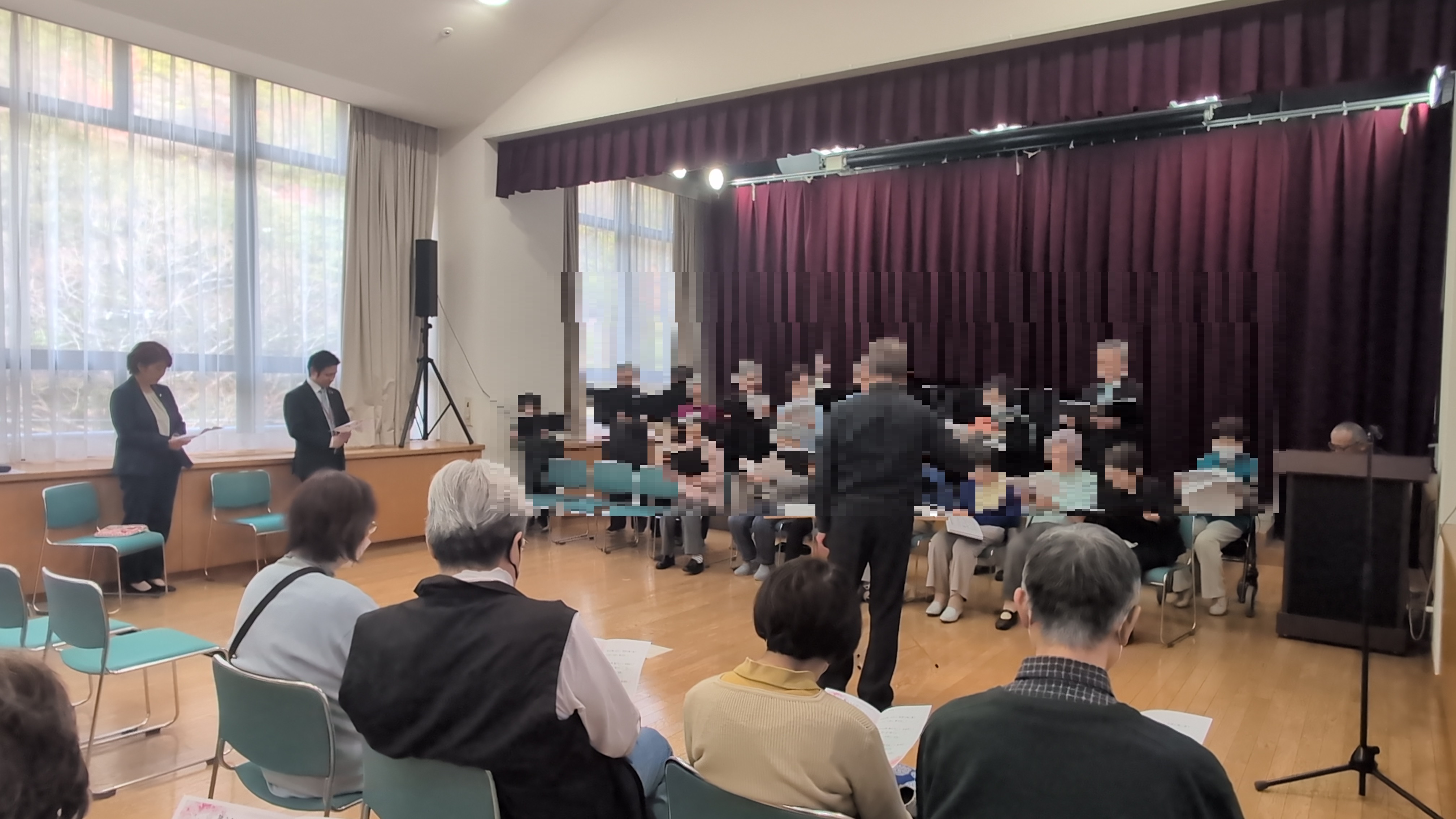 なんとサプライズが。コーラス同好会の先生や皆さまより「旅立ちの日」のプレゼント。会場のご入居者、職員も歌い⋯会場が一体となるのを感じました。両園長も職員もご入居者も涙⋯。実はこのサプライズはご入居者からご提案いただき、コーラス同好会の先生・ご入居者にご協力いただき、職員も園長に内緒で進めていました。