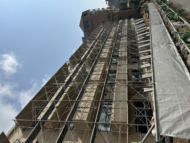 建物周辺に足場が組みあがってきました。