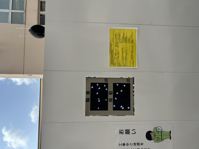 騒音計、振動計の表示が皆様にも分かるように解体区域に取り付けております。