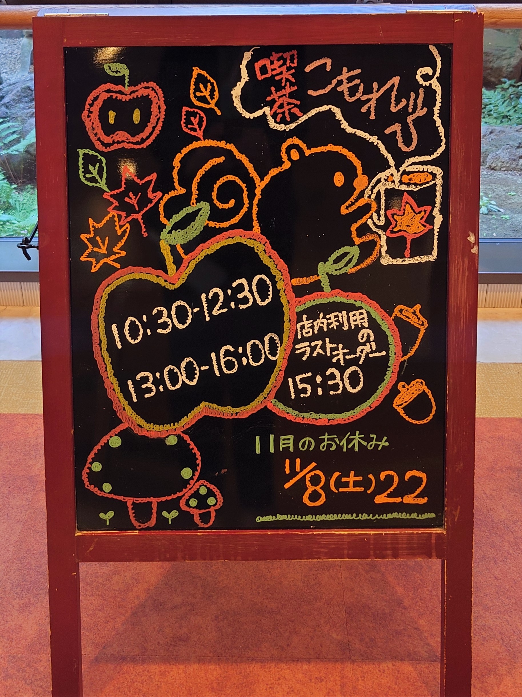 11月の喫茶こもれび エデンの園トップ 浦安エデンの園トップ スタッフブログ 11月の喫茶こもれび 11月の喫茶こもれび 浦安 秋の看板になりました。 中庭の綺麗な紅葉を見ながらお茶をしませんか? シェア ツイート