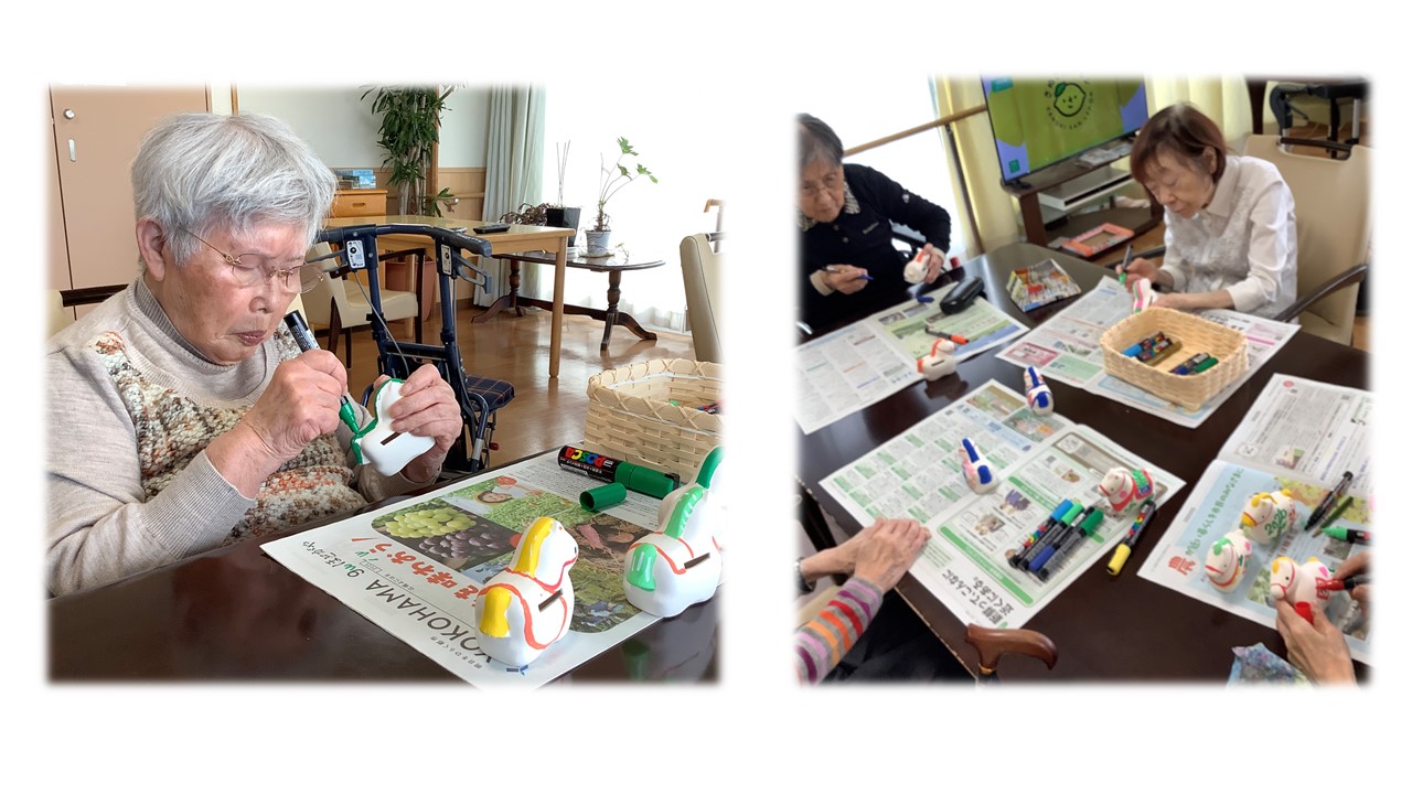 【アクティビティ】『干支:午』絵付け エデンの園トップ 横浜エデンの園トップ スタッフブログ 【アクティビティ】『干支:午』絵付け 【アクティビティ】『干支:午』絵付け 横浜 来年の干支「午」 陶器の貯金箱に絵付けをしました 職員が作った見本を見ながら真剣に作品作りです。 集中した皆さんの様子をどうぞ。 絵付けした作品は、11月1日(日)からの【エデン作品展】に展示します シェア ツイート