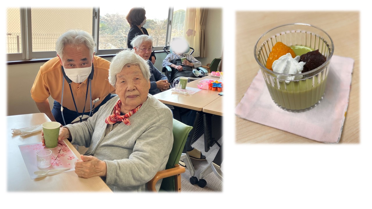 食事サービス課手作りのムースを食べて懇談し、楽しいひと時を過ごしました。