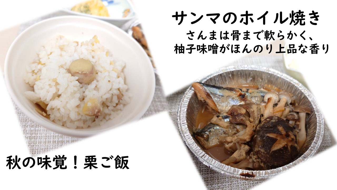 【夕食】長月御膳 エデンの園トップ スタッフブログ 【夕食】長月御膳 【夕食】長月御膳 横浜 9月は「長月御膳」です。 サンマ・栗・梨など 秋を感じさせる食材を使用しています。 まだまだ暑いですが、少しずつ秋の気配が感じられていますね。 <献立> サンマのホイル焼き かぼちゃサラダ ありの実(梨) お吸い物 栗ご飯 シェア ツイート