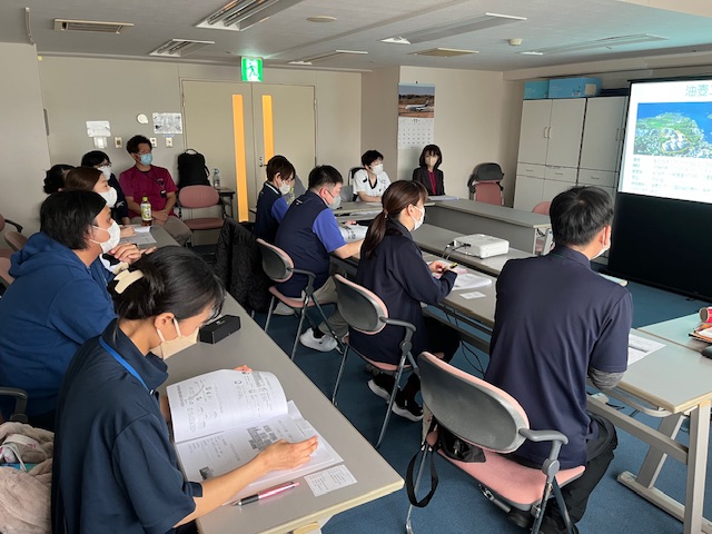 今回、研修施設として油壺エデンの園、奈良ニッセイエデンの園のみなさんにご協力いただき総勢17名の職員が、施設での取り組みについて説明を受け、現場職員のみなさんと意見交換を行いました。