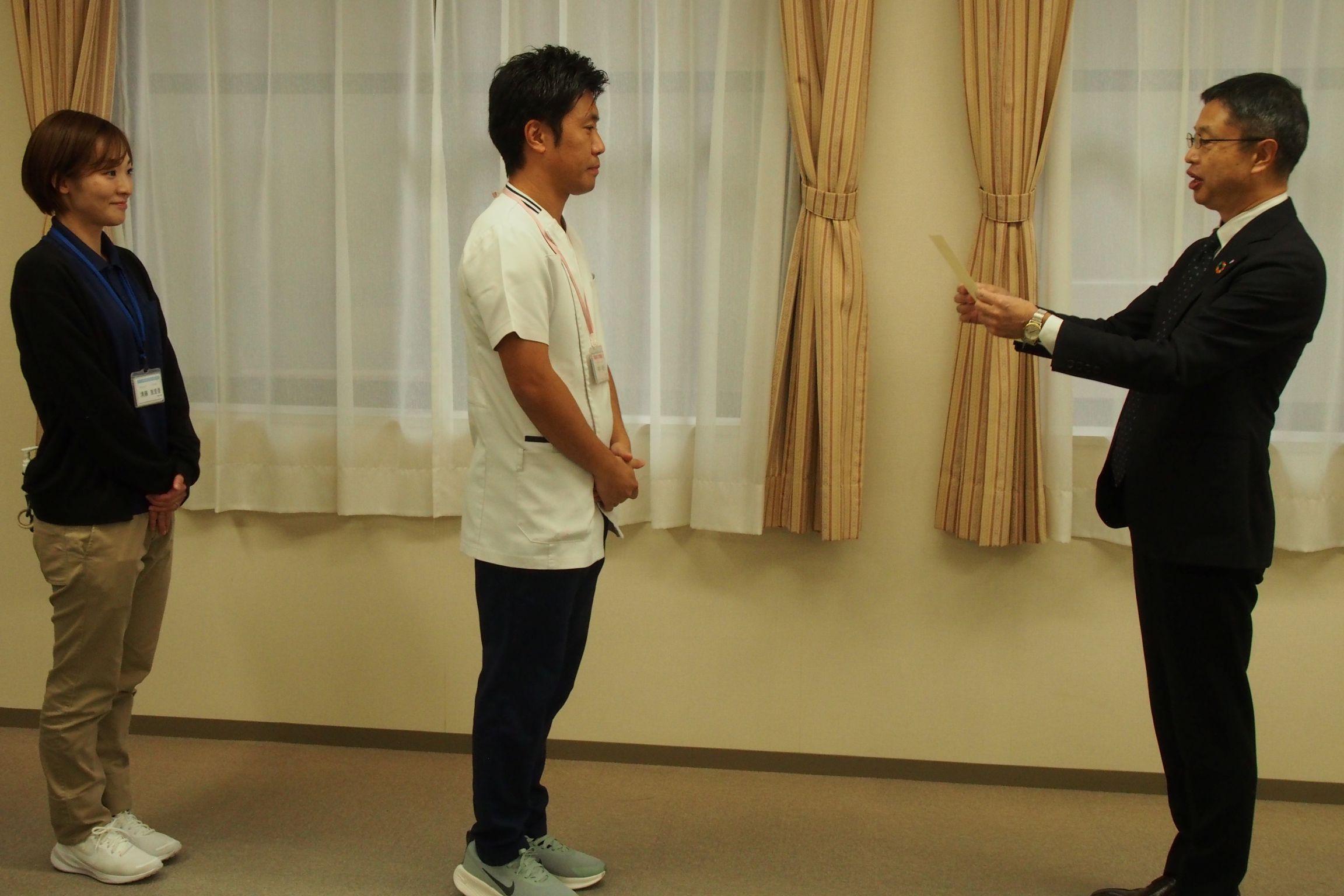 インターンシップ プロジェクトメンバーが、聖隷福祉事業団 高齢者公益事業部長から表彰を受けました。