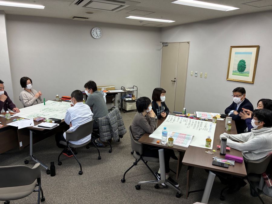 毎年松戸ニッセイエデンの園では、次年度の事業計画策定に向けた会議を開催しています。今年は12月6日(土)に各職場の役職者が集まり、開催いたしました。今年のテーマは4つあり「人材獲得・人材育成」「安全安心な生活の提供、サービスの質向上」「ICT・DXや業務改善の取り組み」「安定的な経営基盤の維持への取り組み」とし、それぞれについて現状課題や当園の強み、新規で行いたいことをグループに分かれて話し合いました。最後には分かち合いの場として、グループは発表を行いました。次年度に向けてよい話し合いができ、さらには職員間のコミュニケーションも取れました。来年度はさらにパワーアップした松戸ニッセイエデンの園になります。