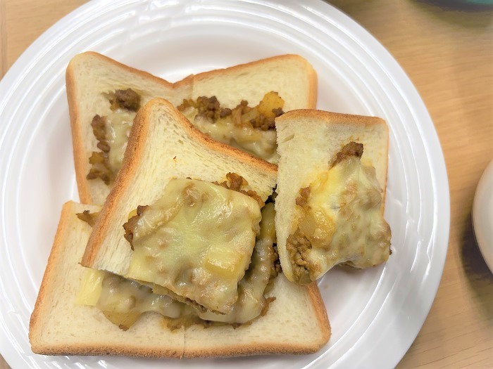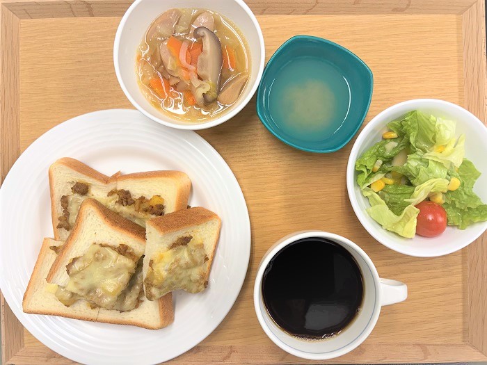 【昼食】カレーチーズトースト エデンの園トップ 松山エデンの園トップ 食事サービス 【昼食】カレーチーズトースト 【昼食】カレーチーズトースト 2026年1月9日(金) ■メニュー ・カレーチーズトースト ・ウインナーポトフ ・コーンサラダ ・ピーチゼリー ・珈琲又は紅茶 ■摂取量 ・エネルギー:513kcal ・蛋白質 :19.4g ・脂質 :20.7g ・炭水化物 :61.6g ・塩分 :2.8g ・食物繊維 :4.0g シェア ツイート