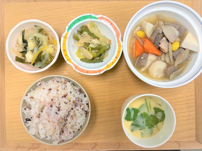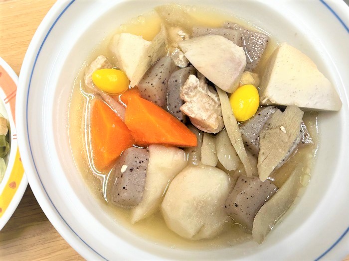 【昼食】芋炊き エデンの園トップ 松山エデンの園トップ 食事サービス 【昼食】芋炊き 【昼食】芋炊き 2025年12月16日(火) ■メニュー ・米飯 ・芋炊き ・アスパラの炒め物 ・カリフラワーの酢の物 ・茶碗蒸し ■摂取量 ・エネルギー:523kcal ・蛋白質 :20.5g ・脂質 :10.5g ・炭水化物 :91.6g ・塩分 :2.7g ・食物繊維 :7.7g シェア ツイート